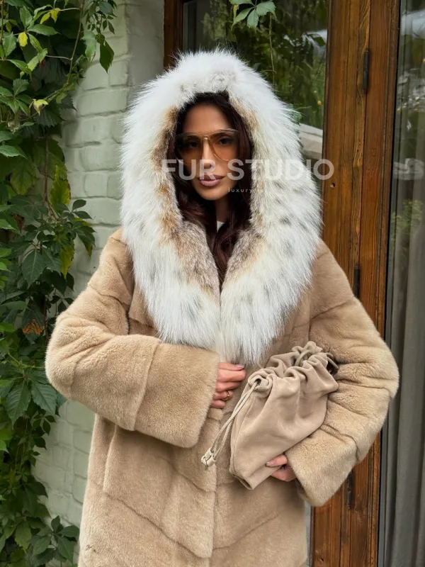 Бежевая норковая шуба с капюшоном рысь доступна для покупки в нашем шоуруме Furs Studio в . У нас так же есть доставка во все города России. Добавьте немного роскоши в свой гардероб с этой шубой, которая будет служить вам многие годы.