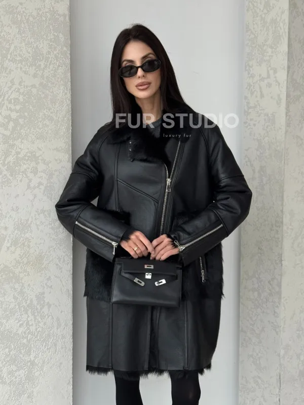 Черная дубленка на тоскане 100740