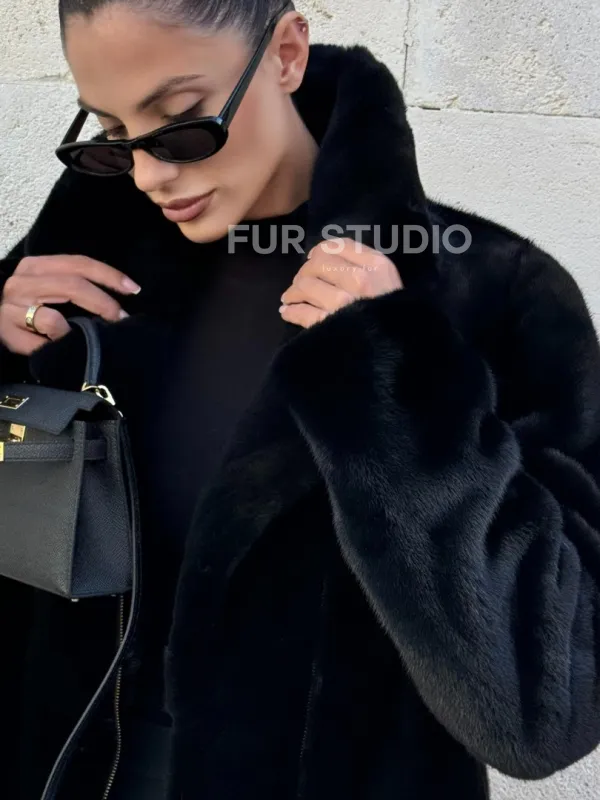 Мех данной шубы аукционная норка , цвет черный. Предлагается в размерах от 42 до 52. Длина модели 55-60 см, что выгодно подчеркивает фигуру девушек. Эта модель идеально подойдет для девушек и женщин, предпочитающих роскошные натуральные меха.