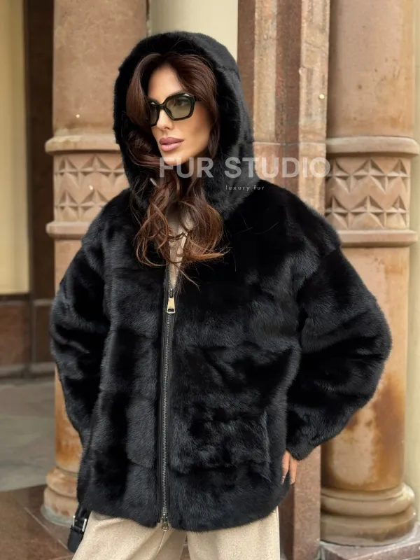 Черная норковая шуба с капюшоном доступна для покупки в нашем магазине Furs Studio в , с возможностью доставки в любой город России. Добавьте немного стиля и элегантности в свой гардероб с этой курткой, которая будет вам служить многие годы, подчеркивая ваш неповторимый стиль.