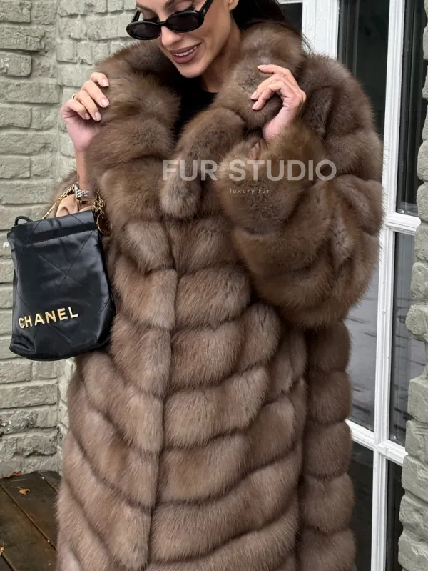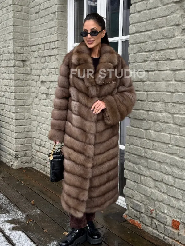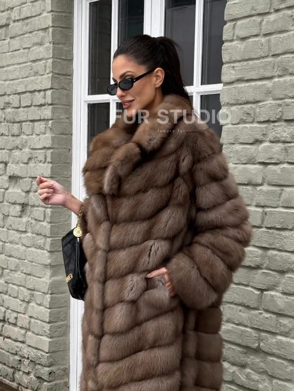 Длинная шуба из меха куницы 101348