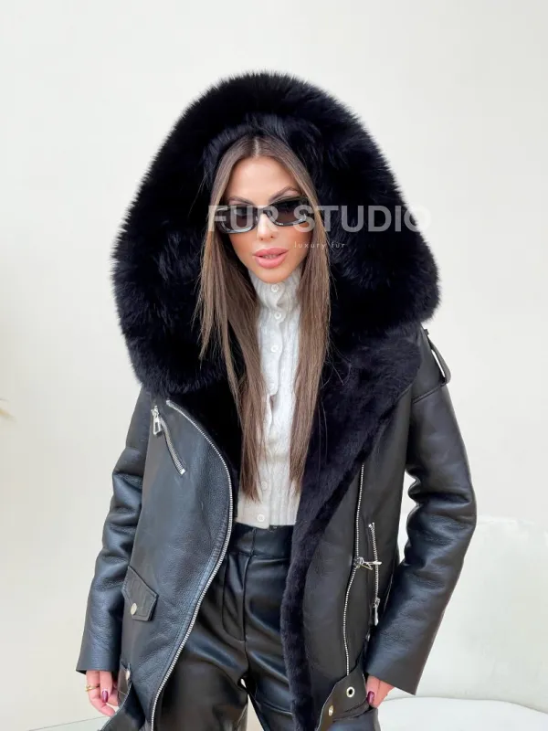 Дубленка авиатор из натуральной овчины с капюшоном – хит этого года. Модель создана для девушек, которые любят быть в тренде. Шикарный капюшон позаботится о прическе и согреет голову в прохладное время года. Прямой крой скроет недостатки фигуры. Удобный фермуар придает образу экстравагантности. Натуральная овчина позаботится о том, чтобы владелица не замерзла даже в самую холодную зиму.