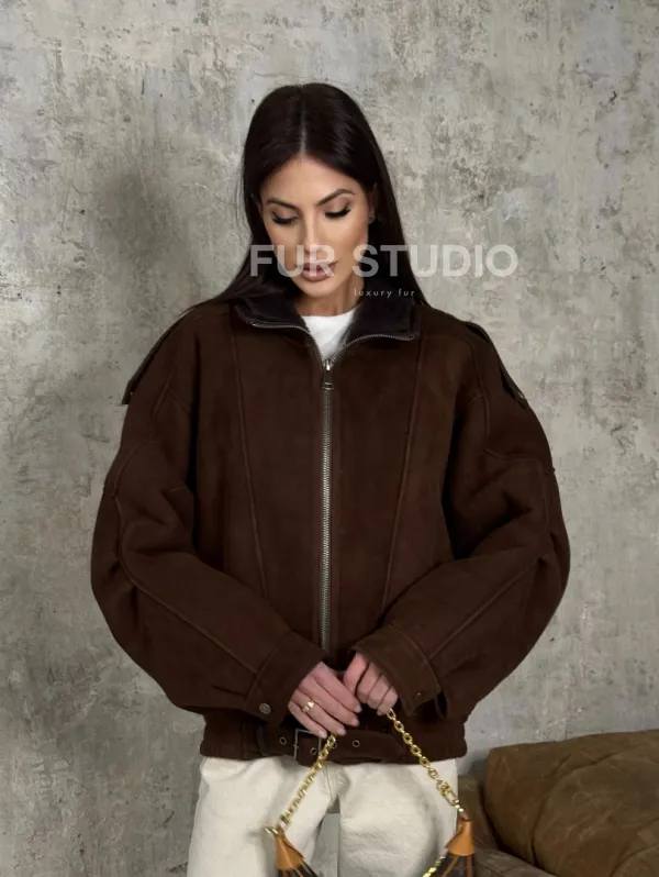 Дубленка - бомбер на молнии из овчины MERINO 101714