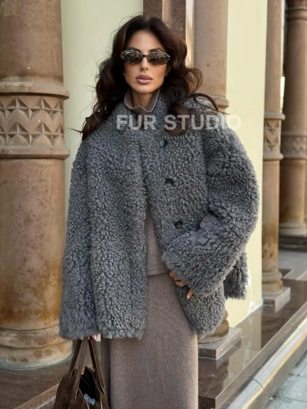 Дубленка серого цвета - двухсторонняя доступна для покупки в нашем шоуруме Furs Studio в , а также предлагается удобная доставка во все города России. Обогатите свой гардероб этой дубленкой, которая прослужит вам многие годы, добавив немного роскоши в ваш повседневный образ.