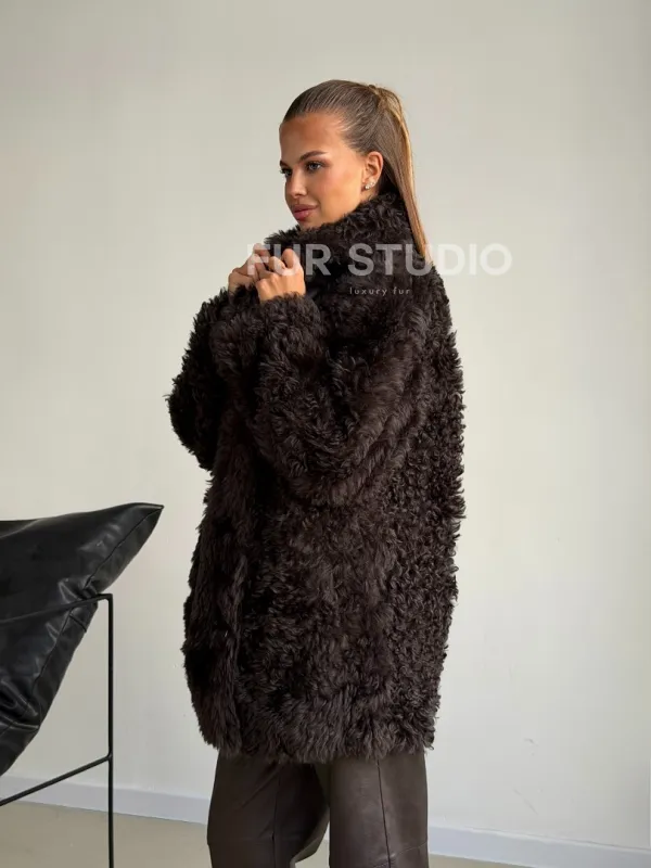 Дублёнка коричневая из овчины - тиградо. Модель предлагается в размерах от 42 до 48. Оптимальная длина моделей 70-75 см подчеркивает линии вашей фигуры. Эта дубленка станет неотъемлемой частью гардероба для тех, кто предпочитает роскошь и утонченность натуральной кожи.