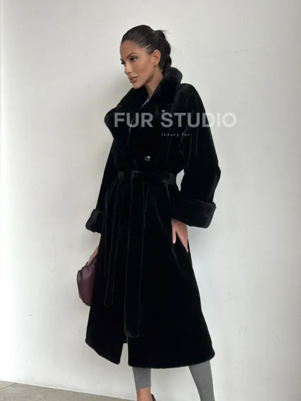 Элитная шуба из меха стриженой черной норки 101397
