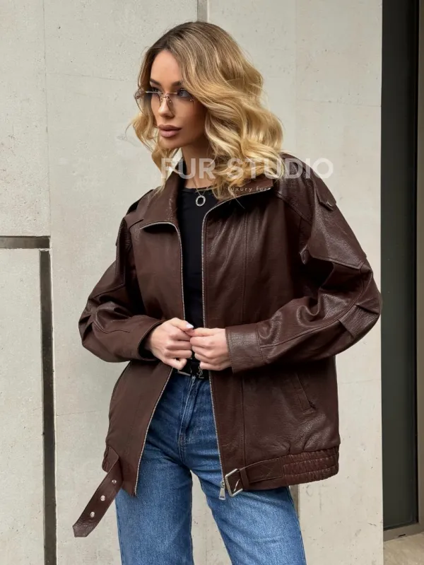 Коричневая кожаная курточка - бомбер на молнии доступна для покупки в нашем шоуруме Furs Studio в , где также предоставляется удобная доставка во все города России.