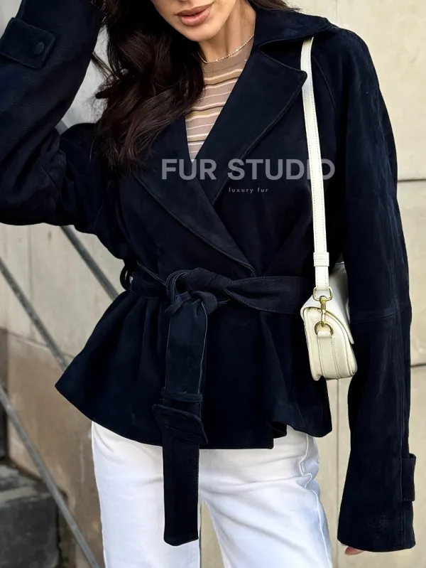 Модная куртка из замшевой кожи доступна для покупки в нашем шоуруме Furs Studio в , где также предоставляется удобная доставка во все города России.
