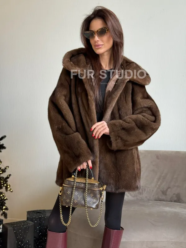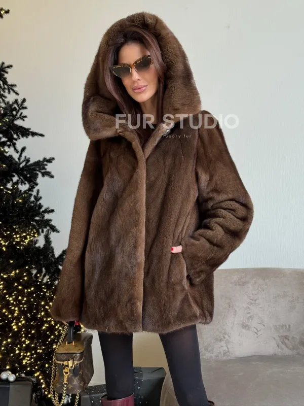 Норка автоледи с капюшоном, роспуск в цвете орех доступна для покупки в нашем шоуруме Furs Studio в . У нас так же есть доставка во все города России. Добавьте немного роскоши в свой гардероб с этой шубой, которая будет служить вам многие годы.