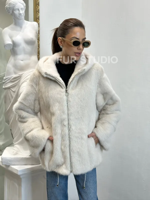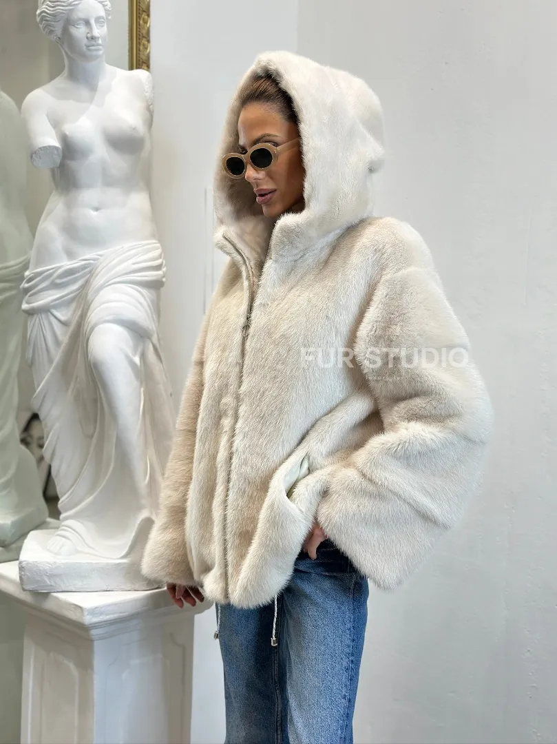 Норковая куртка с капюшоном - цвет ваниль 100797