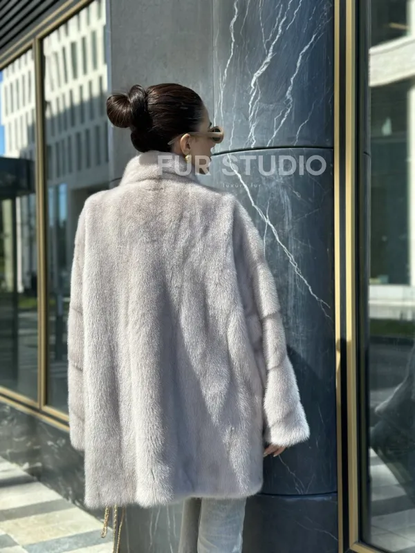 Мех данной шубы аукционная норка, цвет бежевый. Предлагается в размерах от 42 до 54. Длина модели 75-80 см, что выгодно подчеркивает фигуру девушек. Эта модель идеально подойдет для девушек и женщин, предпочитающих роскошные натуральные меха.