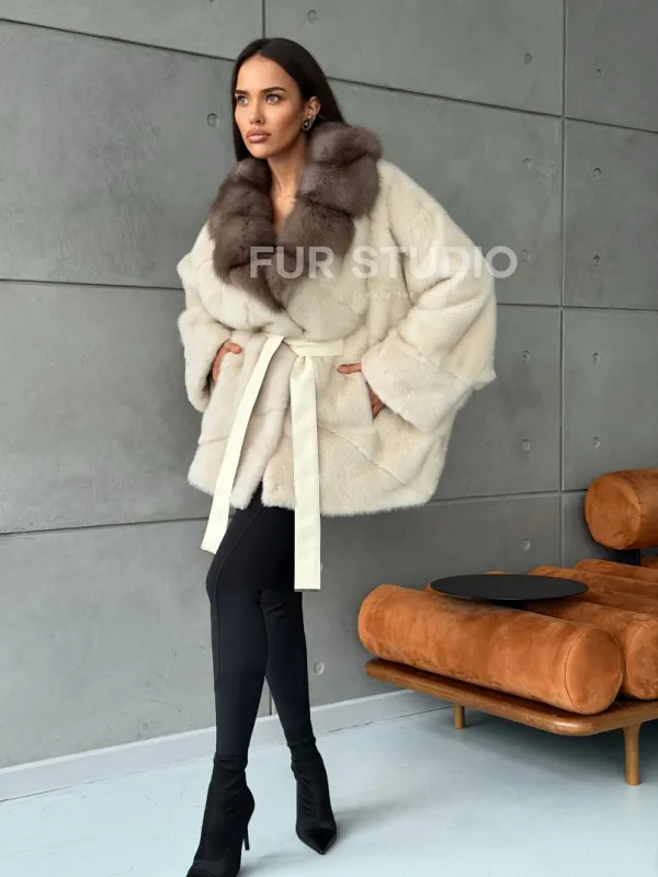 Норковая шуба - куртка с мехом куницы 102793