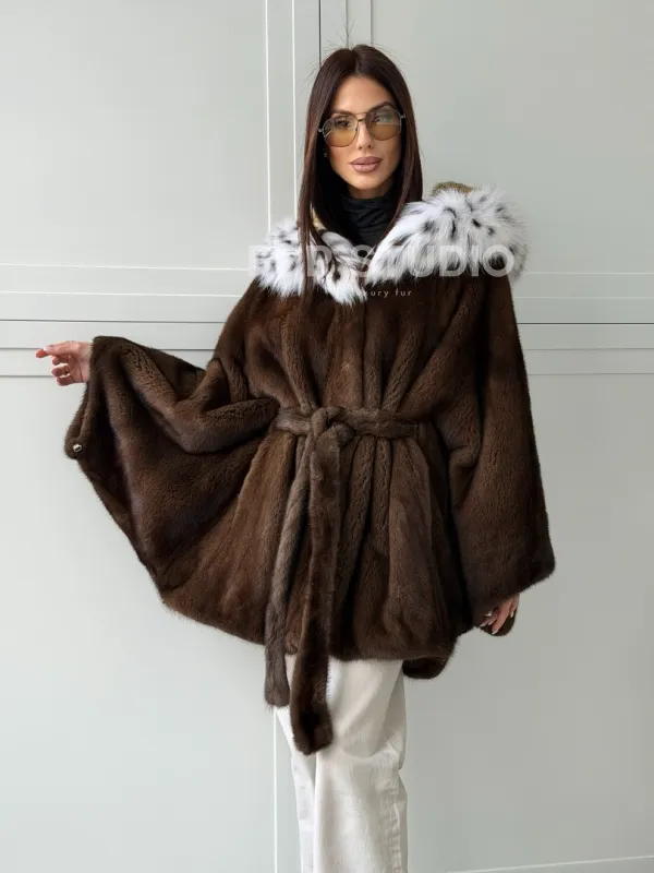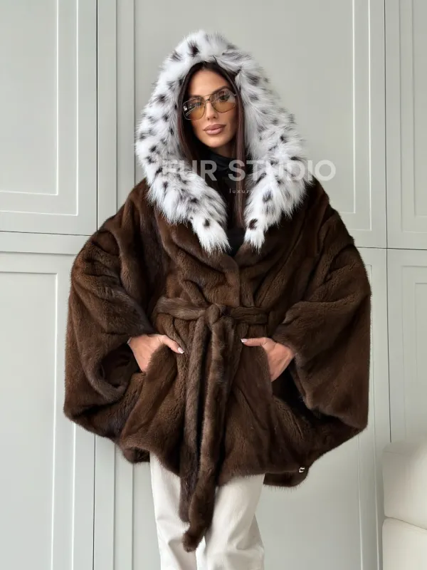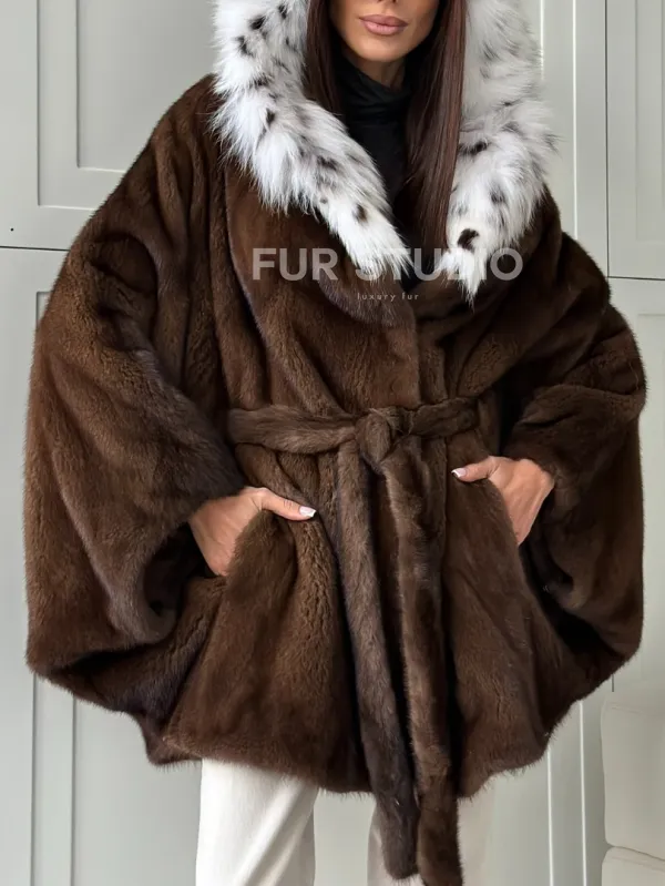 Норковая шуба с капюшоном по рысь 102819