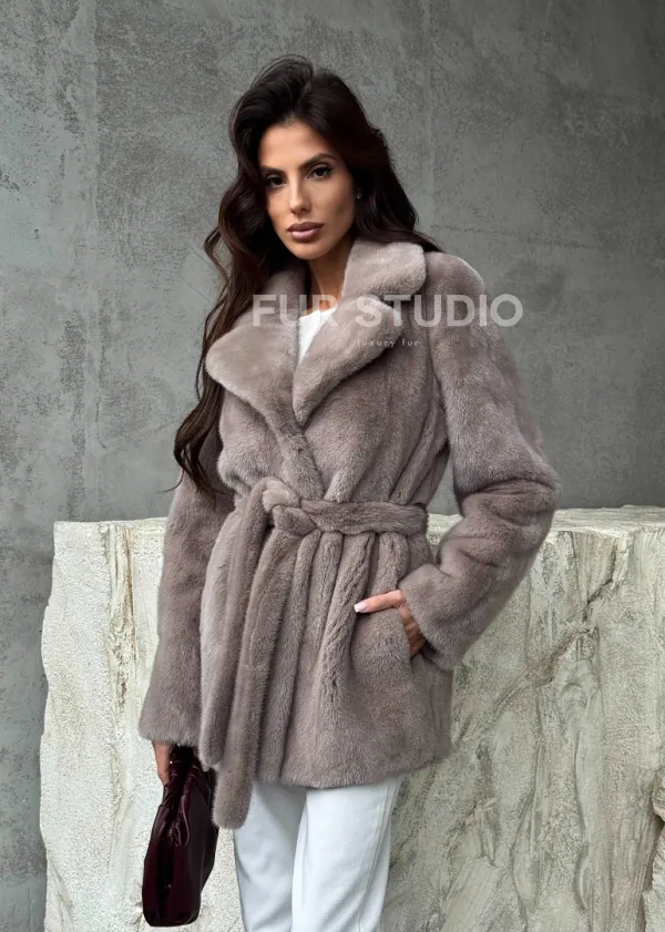 Норковая шуба - жакет с поясом 102488