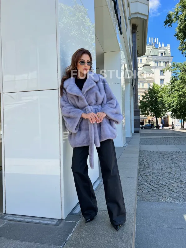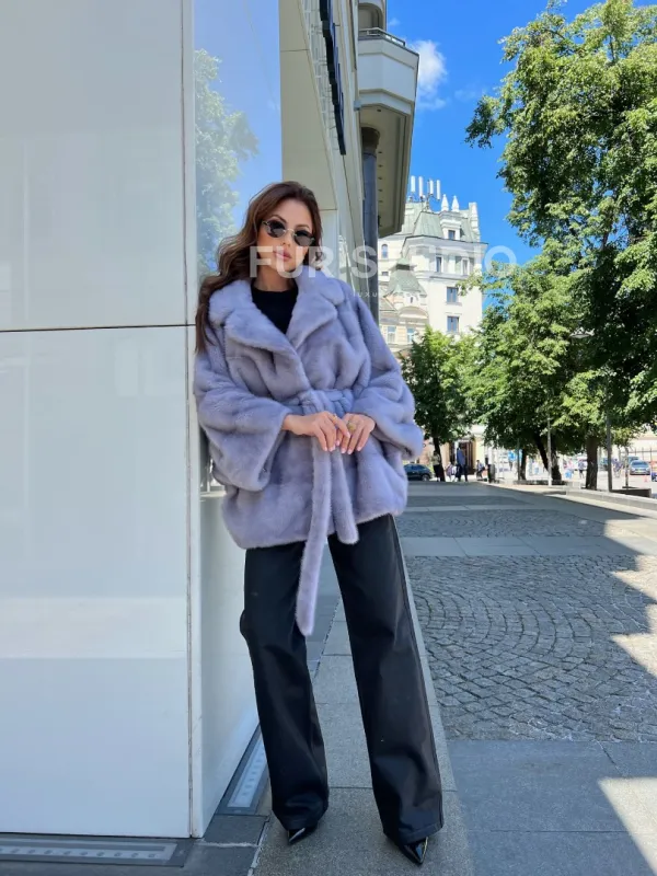 Нежный мех бережно согреет владелицу в любую непогоду. Широкие рукава не сковывают движение. Оптимальная длина удобна при носке. Меховой пояс очертит талию и создаст силуэт песочных часов. В изделии вы будете выглядеть женственно и роскошно. Образ дополнит статусная сумочка. Купить норковое пончо из меха голубой норки может женщина, у которой безукоризненный вкус и она любит выглядеть роскошно.