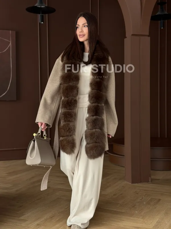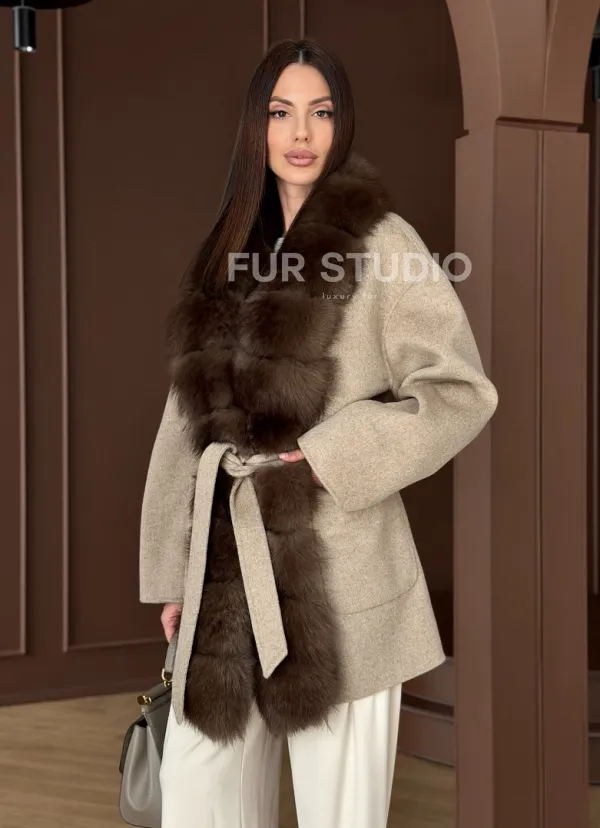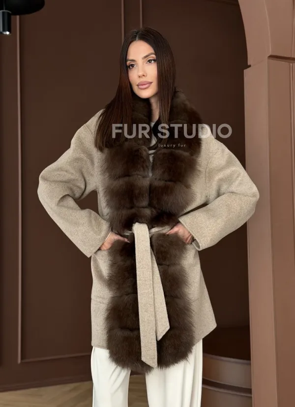 Пальто с отделкой из меха песца 102908