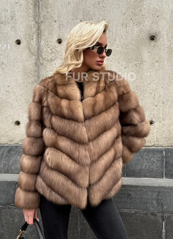 Полушубок из куницы с V-образным воротником доступна для покупки в нашем шоуруме Furs Studio в . У нас так же есть доставка во все города России. Добавьте немного роскоши в свой гардероб с этой шубой, которая будет служить вам многие годы.