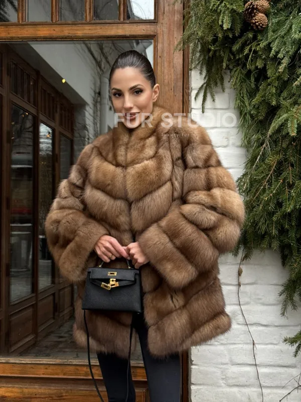 Полушубок из куницы с воротником V-образным доступна для покупки в нашем шоуруме Furs Studio в . У нас так же есть доставка во все города России. Добавьте немного роскоши в свой гардероб с этой шубой, которая будет служить вам многие годы.