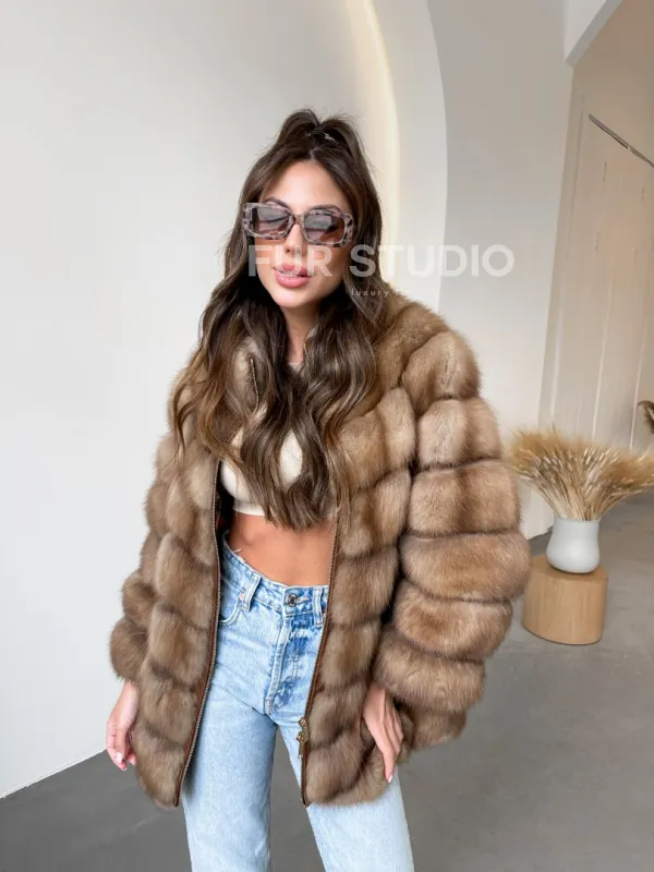 Шуба из куницы на молнии 100543