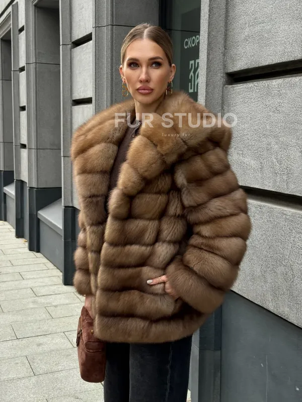 Мех данной шубы лесная куница, цвет натуральный. Предлагается в размерах от 42 до 46 (oversize). Длина модели 70-75 см, что выгодно подчеркивает фигуру девушек. Эта модель идеально подойдет для девушек и женщин, предпочитающих роскошные натуральные меха.