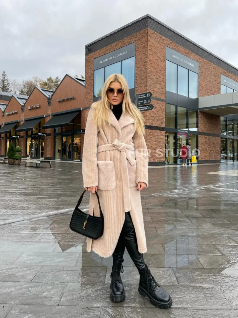 Модель гармонично сочетается с базовым гардеробом, подойдет под вечерний наряд. В верхней одежде вы будете выглядеть женственно и со вкусом. Благородный оттенок подчеркнет цвет волос и глаз владелицы. Стильная обувь добавит в образ лаконичности. Купить шубу из натуральной шерсти в бежевом оттенке могут девушки, которые хотят выглядеть роскошно в любое время года.