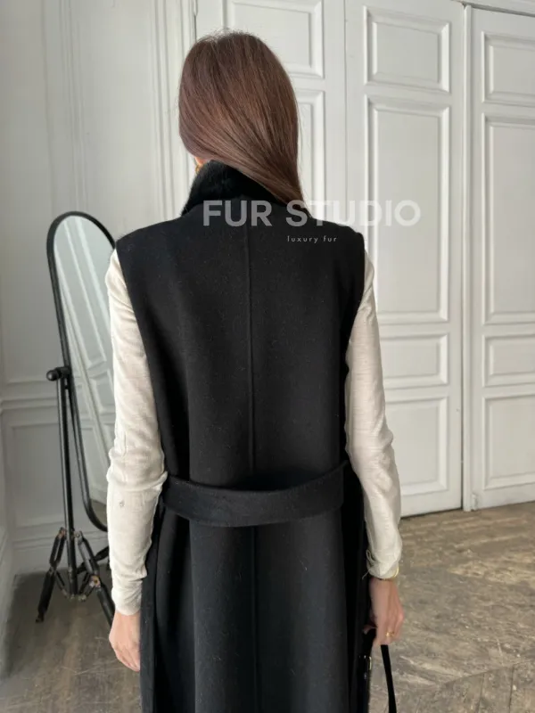 Стильное кашемировое пальто с мехом норки 100892