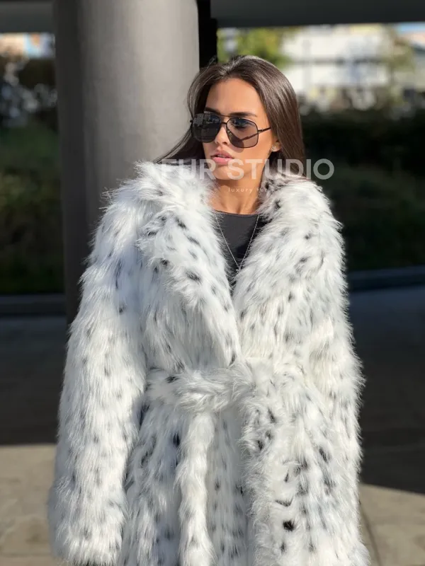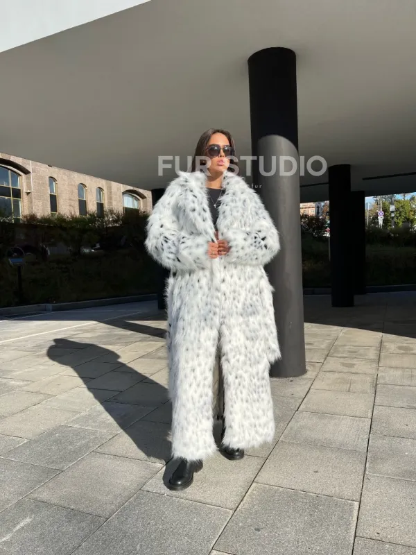Удлиненная шуба из экомеха под рысь 100294