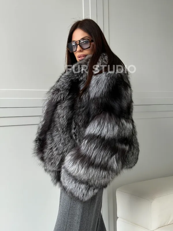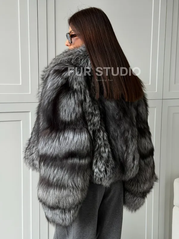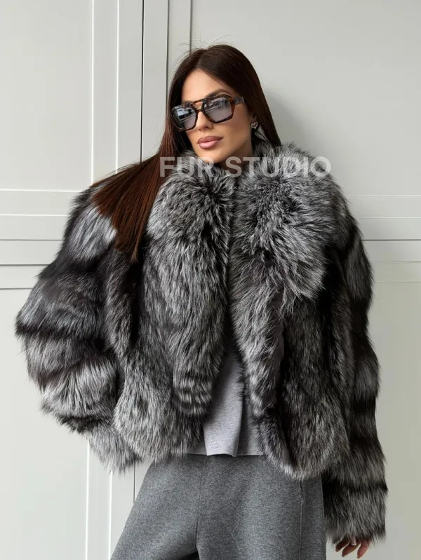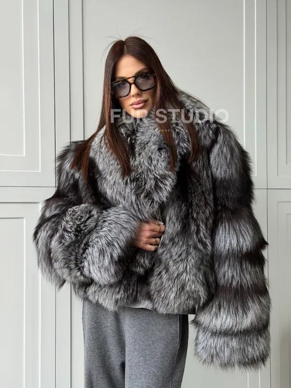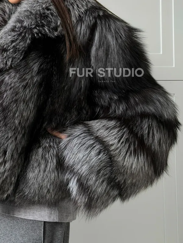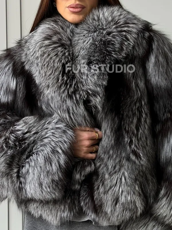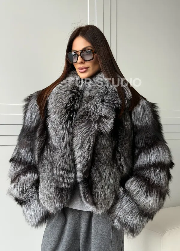Мех данной шубы лиса, цвет серый. Предлагается в размерах от 42 до 50. Длина модели 50-55 см, что выгодно подчеркивает фигуру девушек. Эта модель идеально подойдет для девушек и женщин, предпочитающих роскошные натуральные меха.