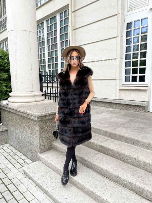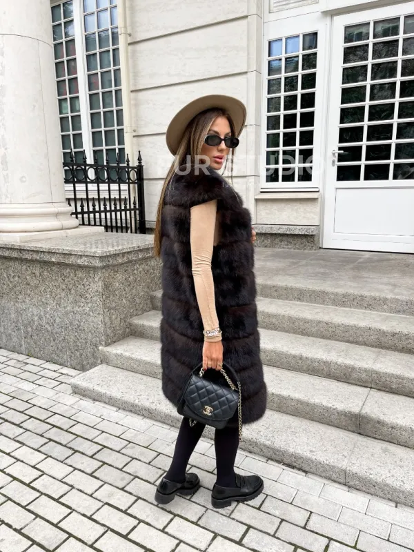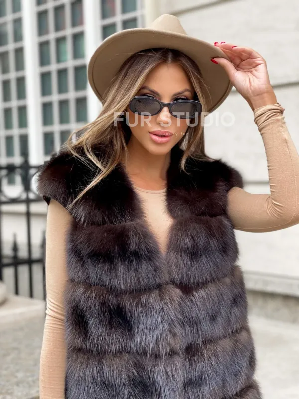 Жилет из куницы в цвете соболь – выбор современных девушек с тонким вкусом. Меховой жилет это тренд сезона вне зависимости от времени года. Каждая модница должна иметь этот аксессуар в своем гардеробе. Качество изделия будет радовать владелицу долгие годы. Куница приятна на ощупь и практически невесома. Прямой крой зрительно удлиняет силуэт и скрывает недостатки фигуры.